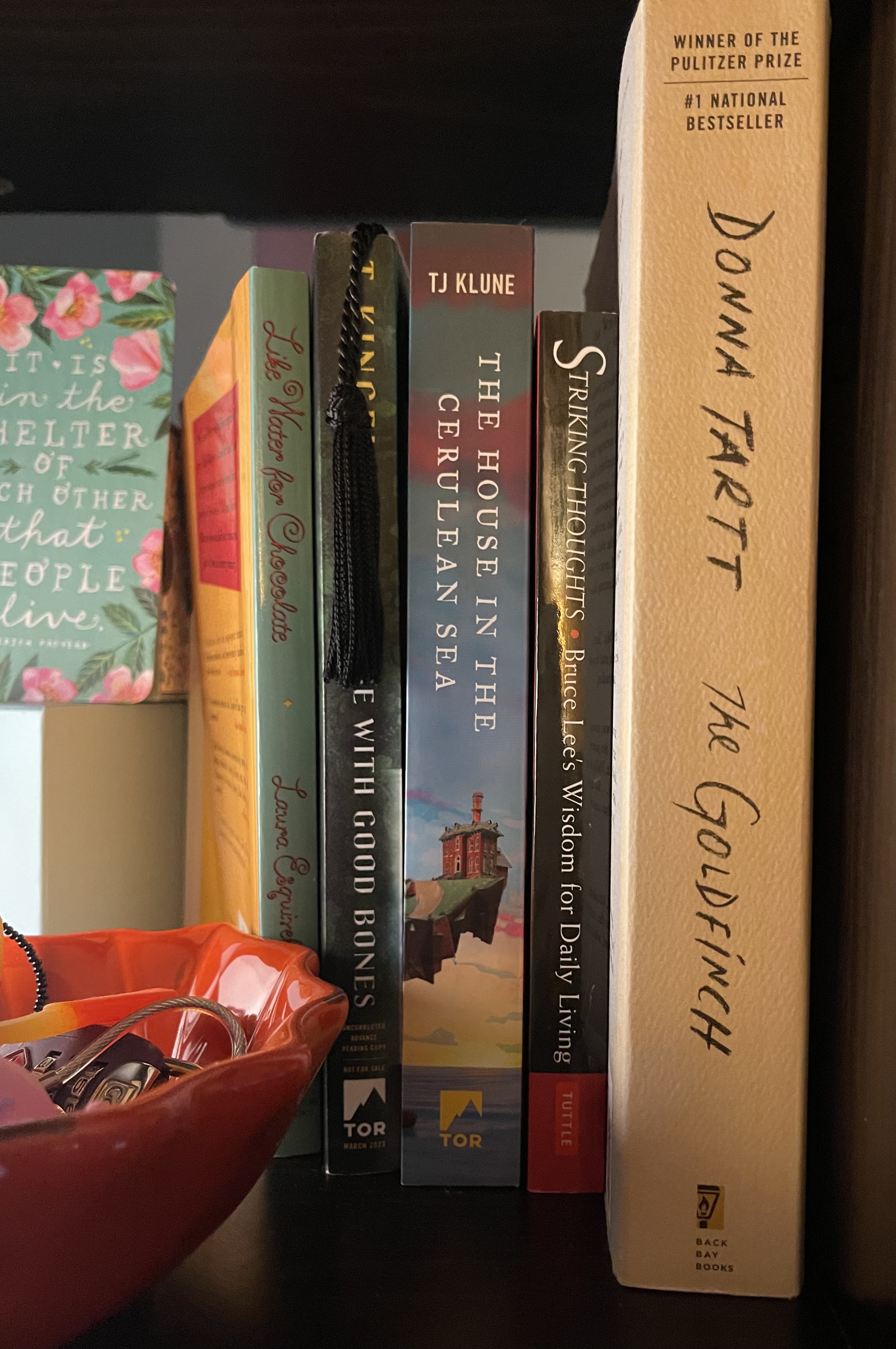 I am looking forward to two books — The Goldfinch by Donna Tartt and A House with Good Bones by T Kingfisher. I have started both of them but am not very far in either. The Goldfinch is a lot longer than A House with Good Bones so I am thinking I will likely get through the shorter one first but we’ll see…I’ll let you know next week.