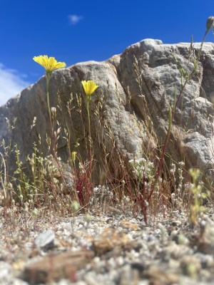 I am happy to report, my husband I made it out to Anza-Borrego State Park about a week ago and loved it. We’ve been making a trip out there every year for the past few years and it’s always so much fun. The drive was beautiful, there were plenty of lush meadows and then of course the desert flowers. We brought our dog Chompers out with us and he had a blast! Half the fun was having him there with us.